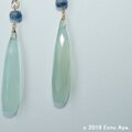 その下に、宝石質ライトブルーカルセドニーAAAの、縦長ドロップブリオレットカットを下げています。