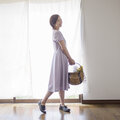 ┗ポケットやファスナー、ボタンなど余計な装飾を一切はぶき、シンプルを極めたワンピースです。その分小物やアクセサリー、着る人を引き立てます。
