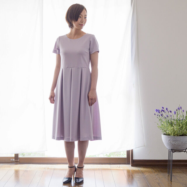 \淡いラベンダーの綺麗なお色。厚み、伸縮ともに普通程度でオールシーズン着れる素材です/