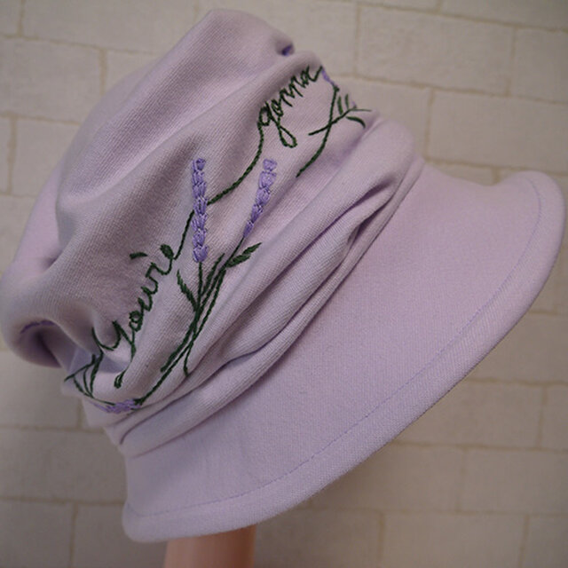 表地にコットン95%ポリウレタン5%のスパンフライスニット生地を使ったクロッシェ型の帽子です。
