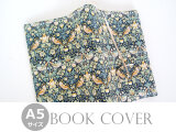 リバティの人気生地、ストロベリーシーフ Strawberry Thief(グリーン)とハーフリネンの生地でA5本サイズのブックカバーを作りました。