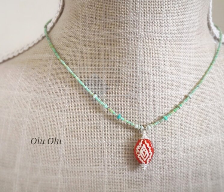 この加工のトルコ石は大変珍しく市場にも出回らない為、エッチドカーネリアン同様かなりの希少石です。