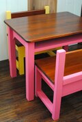 ★ローズピンクとチークカラーローテーブル+パタパタミニベンチ2脚セット