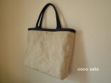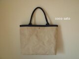 オフベージュの帆布は10号パラフィン(ロウびき)加工を使用。