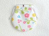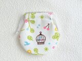 ミニ巾着袋 白色 鳥と植物 御守り 小物収納 プレゼントにも