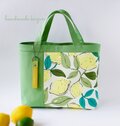 デザイナーズファブリックのレモン柄に、黄緑色の無地帆布を組み合わせたトートバッグです。