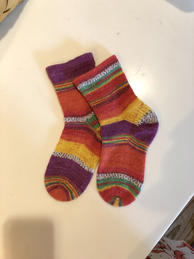 ちなみに竹串か?!ってくらい細い針で編んでるので意外と薄いです。普通の靴下と同じように履けますよ♪