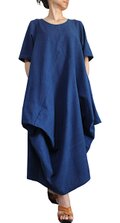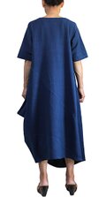 ジョムトン手織り綿のマルチ切り替えドレス インディゴ(DRL-011-03)