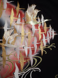 繊細で美しく、上品に奏で長れる鶴が優美さを加味しだす、素敵なアンティーク着物をほどいて、画像デザインのフォーマルワンピースをお作りいたします。