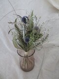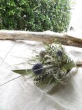 花材:ルリダマアザミベッチーズブルー、HBスターチス、キンポウジュ、マメグンバイナズナ、エミューファン、ユーカリ、グレビレアアイバンホー、、ベアグラスなど