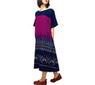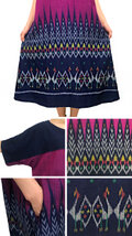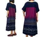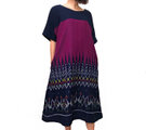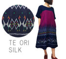タイ東北地方の伝統工芸草木染手織り綿と柔らかなで地厚のシルク絣織りを組み合わせ、着こなしやすい五分袖ワンピースを作りました。
