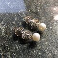 貝と花をイメージしたモチーフ2つにパールを加えたピアス。