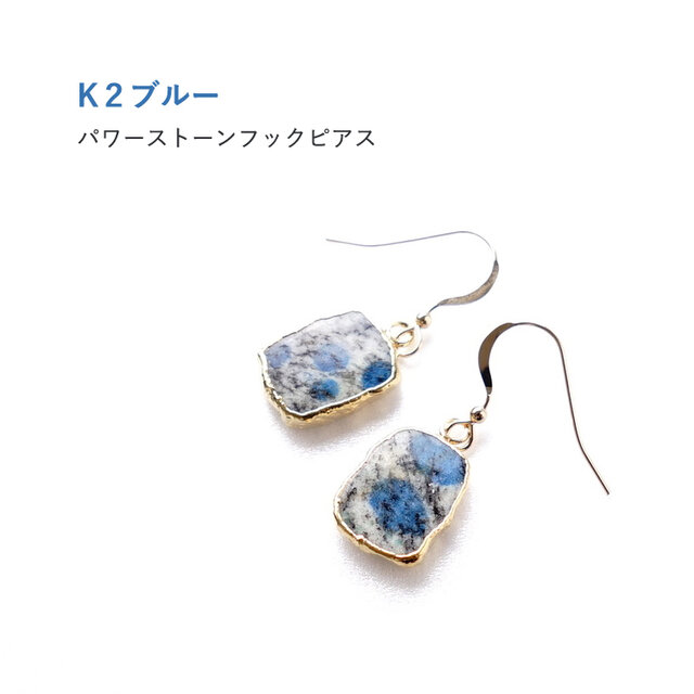 14kgf K2ブルー(K2アズライト)ゴールド 枠留め ピアス ノンホールピアス 天然石