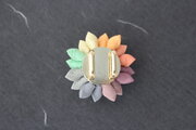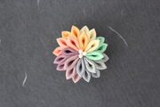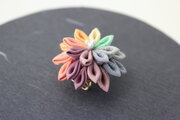 つまみ細工でできた虹色のダリアの花帯留めです。