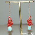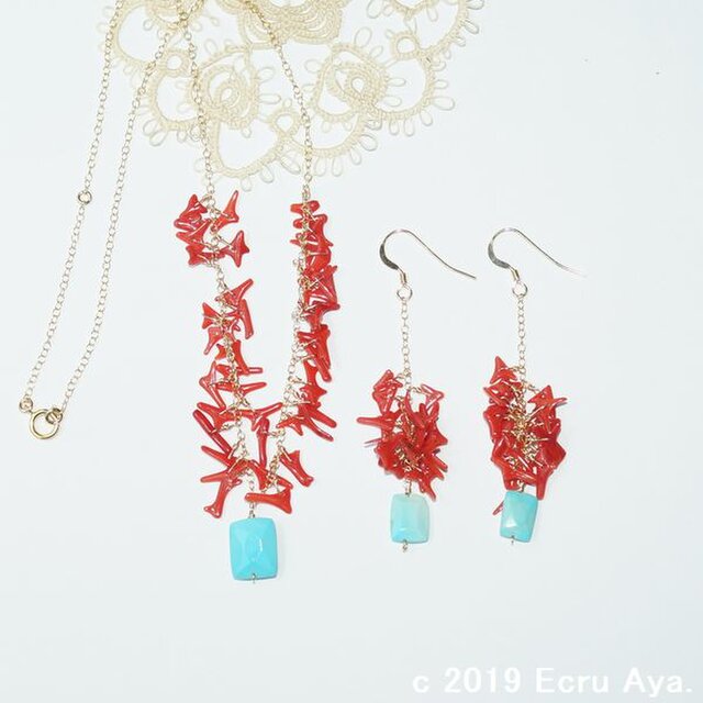 素材:アリゾナ産スリーピングビューティーAAA レクタングルカット、紅珊瑚 チップ、その他すべて14kgf
