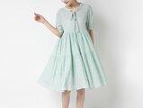 肌触りの良い軽やかな素材と、Vネックの開き具合を調節してくれるリボン紐、