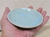 釉薬は自称トルコ釉ですが,薄くかかったので地肌の色が残り,写真よりややくすんだ感じの印象です.釉薬の色を楽しむには少し薄いかもしれませんが,料理の色との兼ね合いを考えると,食欲を失わない程度のどぎつくないトルコかなと思います.