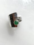 純度の高い950銀の板を、細長い直角三角形にカットして、槌目模様をつけてリングに成形しています。
