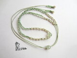 ベージュと淡いグリーンのボタンカットビーズを繋いで、