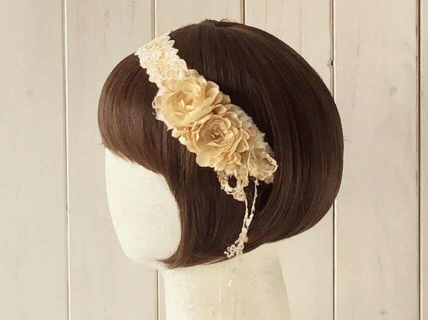 ・染め花は花びらのカット、染め、こてあて、成形、すべて手作業によるものです。多少の色むらやレース・リボンのほつれなどご理解の上、お買い上げくださいませ。また、雨や雪などによる色落ちには十分ご注意ください。