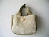 イタリア製のエンボス織インテリアファブリックと帆布を組み合わせたトートバッグ