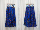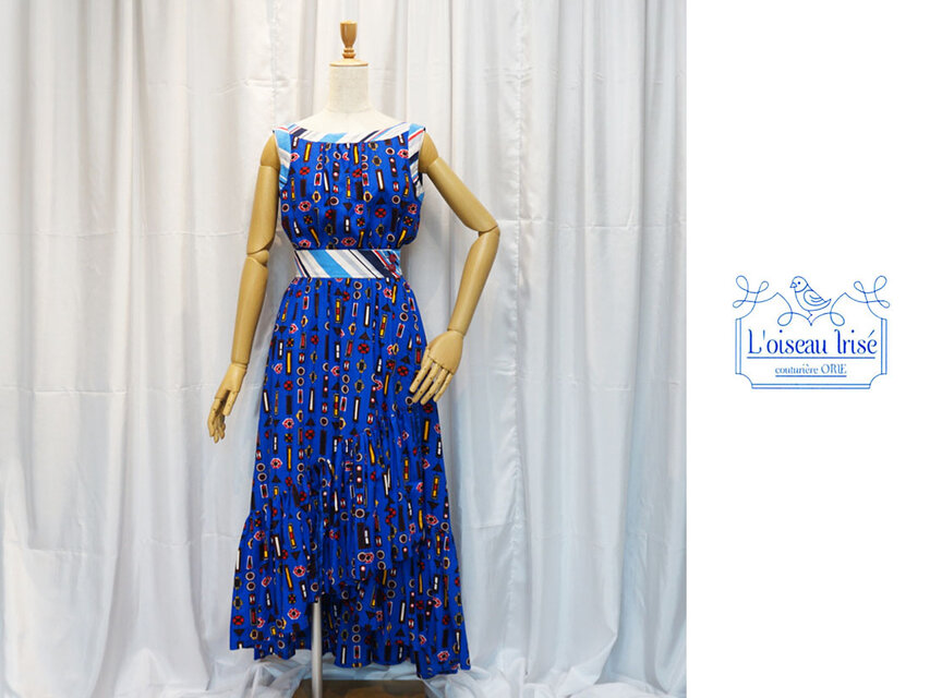 アフリカンファブリックとマルチボーダーのコンビで、脚見せのラップスカートを仕立てました。