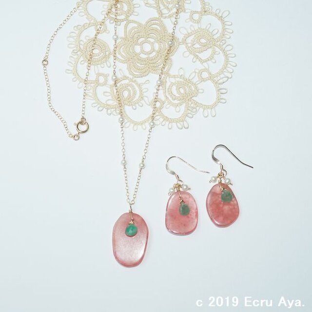 今回は、インカローズとエメラルドとパールでお作り致しましたセットになります。