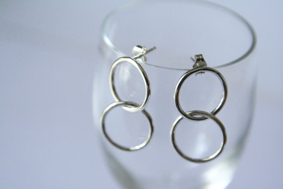 直径15㎜と18㎜のリングを繋げたピアスです。