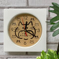 【名入れレーザー彫刻】木目調 Wall clock (猫) 時計 ホワイト 壁掛け時計