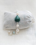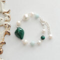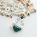 大きな粒のマラカイトのフォレストグリーン、ベビーブルーのブルークオーツアイトと有核バロックパールやハイクオリティのポテト型パールがマリアージュした、スイート&クールなブレスレット Margot-b(マーゴットブレスレット)。