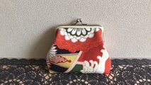 古布の状態の良いところ・柄のきれいなところをとって、がまぐちをつくってみました。