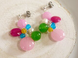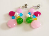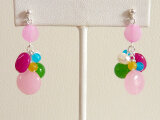 キャンディポップなカラフル天然石と淡水パールのピアス。