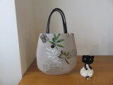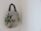 YUWAのオリーブ柄リネンでたまご型トートバッグを作りました。