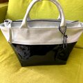 シルバー箔加工牛革とパテントレザー(エナメル加工・山羊革)のトートバック