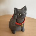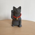 黒御影土で形作り、焼しめました。ざらっとした質感です。目だけ釉薬をかけてきらっと光っています。