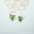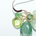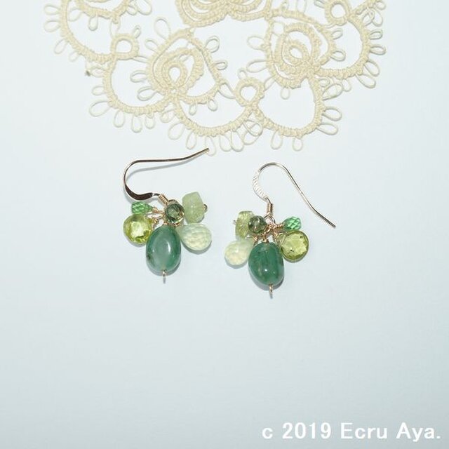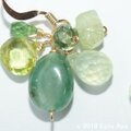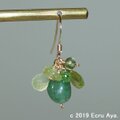 ピアスパーツに丸カンを下げ、ブラジル産エメラルドのオーバルをメインに、宝石質プレナイト、グリーンガーネット、宝石質ペリドット、一点物宝石質ツァボライト、極上カット宝石質グリーンアパタイトを下げました。
