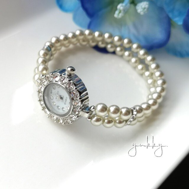 シルキーパールでブレスレットタイプの腕時計を作りました。(*^^*)