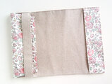 長年使っているとリボンなどではよれてしまいますので、ハーフリネンを袋状にした作りを採用しております。両端にはミシン目を入れ補強しています。