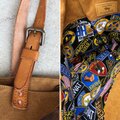 バッグの内側にはポケットが2つ。1つはファスナー付きです。内布の柄はアメリカンポリスのワッペンです。