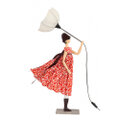 風に吹かれて、スカートがなびき、カラフルな傘がひっくり返ってしまったユーモアあふれるおしゃれなリトルガールランプ♪