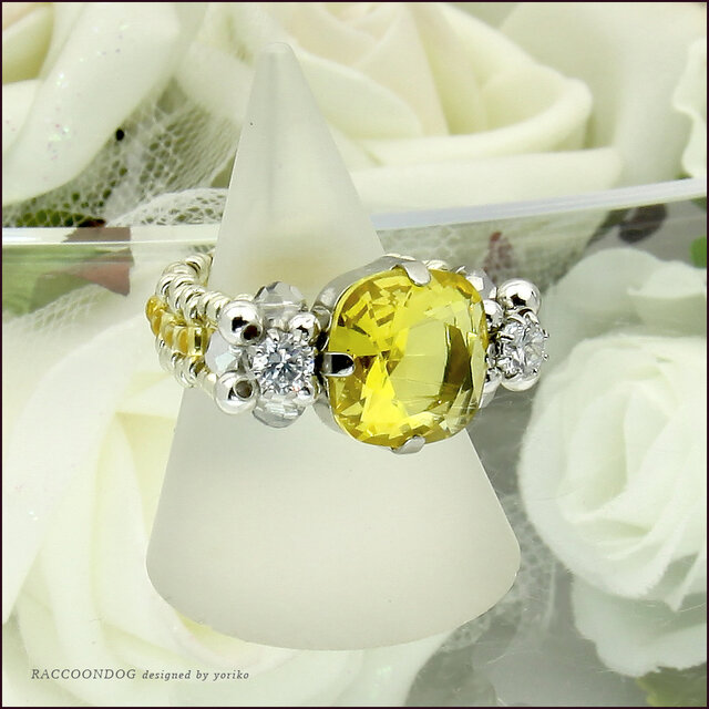 ビーズ,リング,コスチュームジュエリー,ビーズアクセサリー,ビーズリング,クリスタル,ギフト,クリア.ライトトパーズ.スワロフスキー.トパーズ.イエロー
