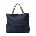 岡山県井原産、老舗デニム生地メーカーこだわりの上質なデニムと、イタリア産本革を組み合わせた、大容量のデニムトートバッグです。