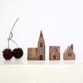 ヨーロッパの教会をモチーフに、無垢の木から削りだして小さな木の家を作りました。