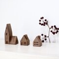ヨーロッパの教会をモチーフに、無垢の木から削りだして小さな木の家を作りました。