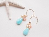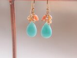 水面のような美しいペアシェイプのアマゾナイトにオレンジピンクのライスパールと
