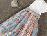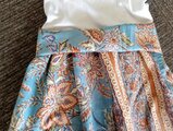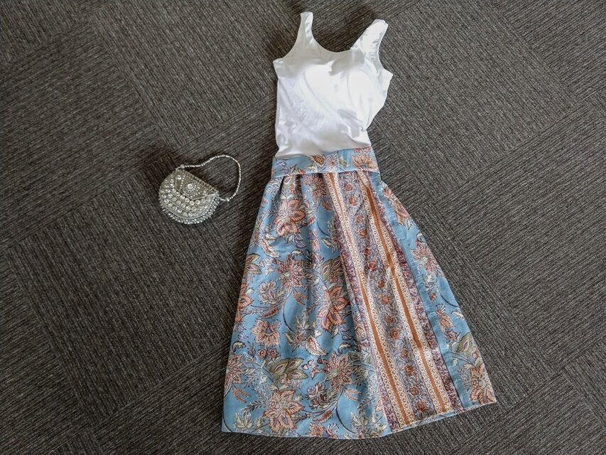 ★熟練手押しブロックプリント★ブルーx茶★インド綿100★ギャザースカート★エキゾチック★