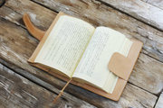 ワンポイントで革のしおりもついています。