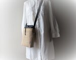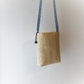 ジュート(黄麻)と幾何学模様の紬、漆塗り玉を組み合わせてポシェットを作りました。