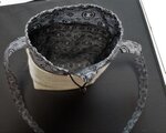肩紐は芯を入れてあり、口の部分は巾着の様に紐で閉まるので安心です。おまけに付けた飾りと口紐部分に漆塗りの付属が付いていてちょっとリッチな気分♪