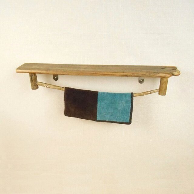 【温泉流木】釘穴の開いた棚付きロングサイズなタオル掛け タオルハンガー タオルラック 流木インテリア